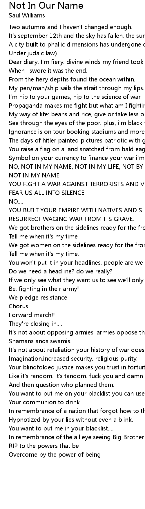 Not In Our Name 歌词