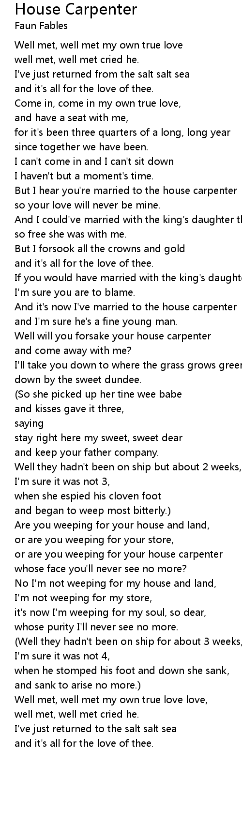 Well will you forsake your house carpenter |