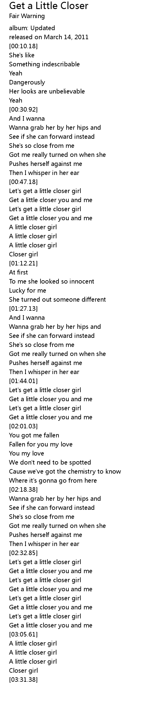 Get a little closer you and me |