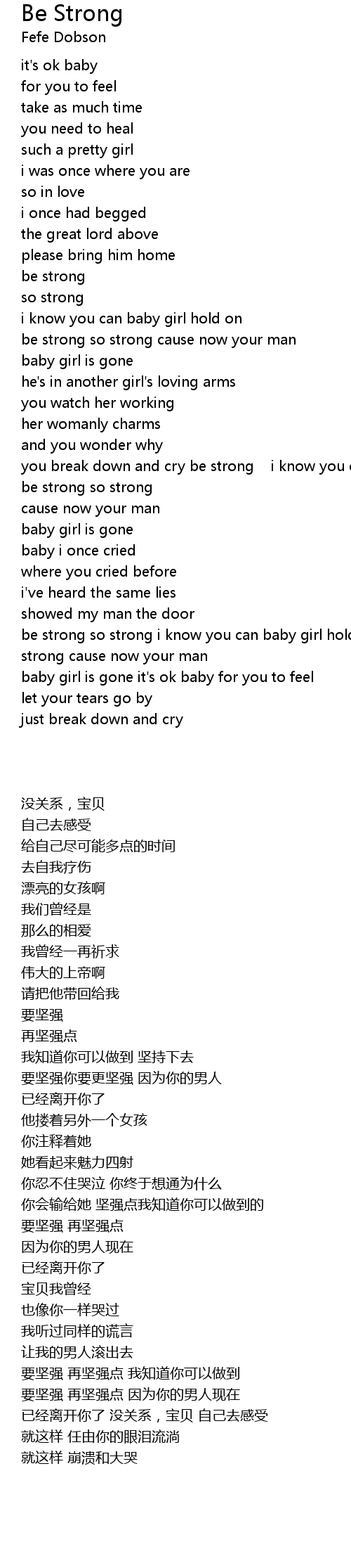 be strong so strong i know you can baby girl hold on be strong so strong cause now your man |