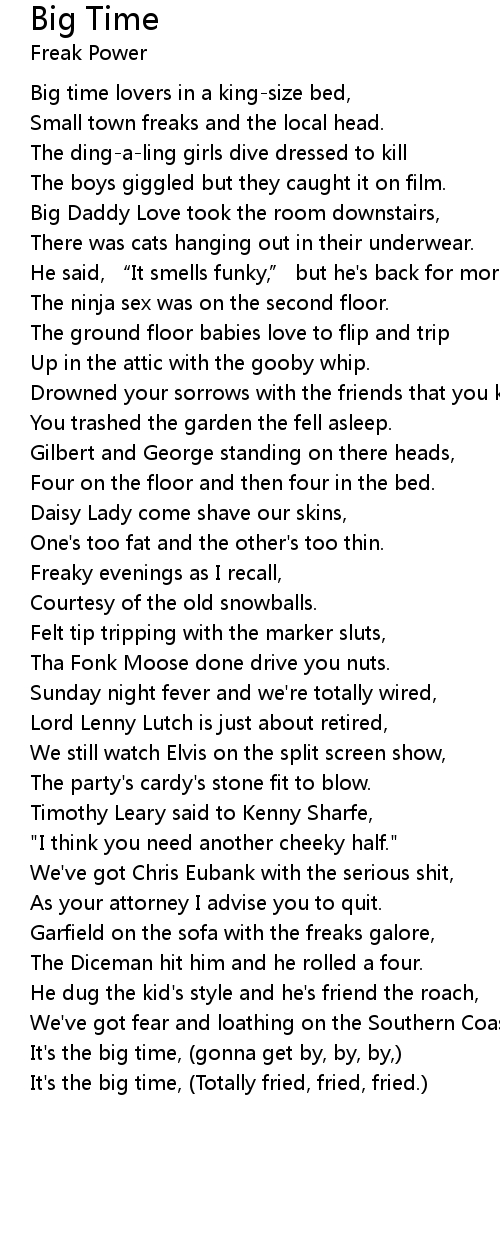 | It' s the big time, gonna get by, by, by, | |