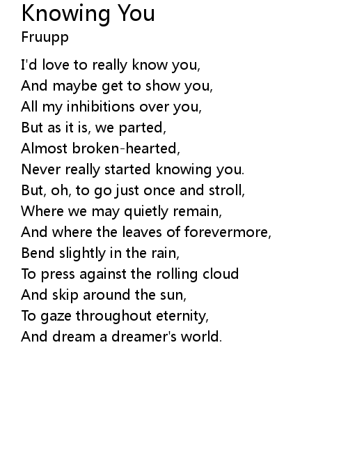 | I'd love to really know you, | |