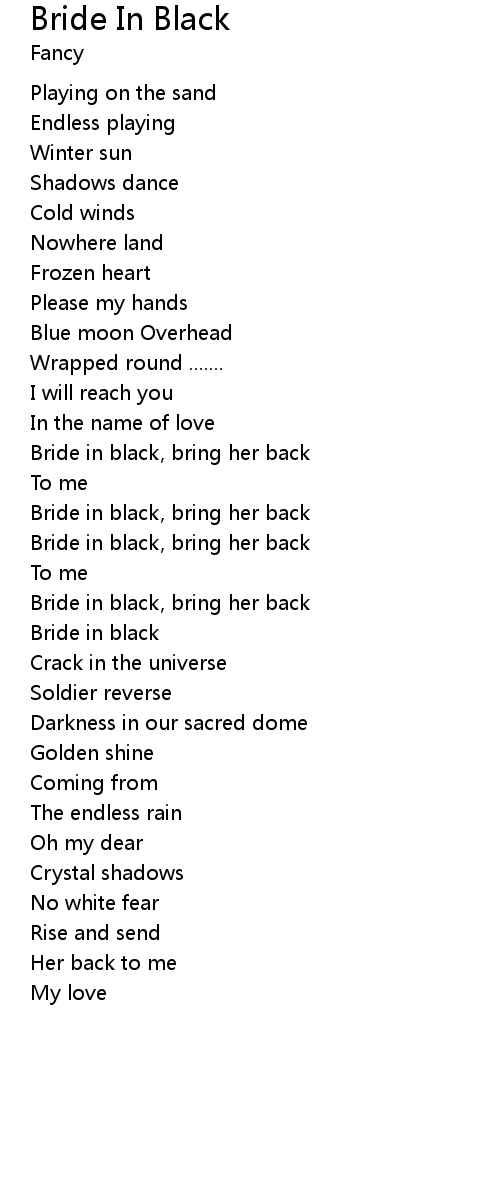 Bride in black, bring her back |
