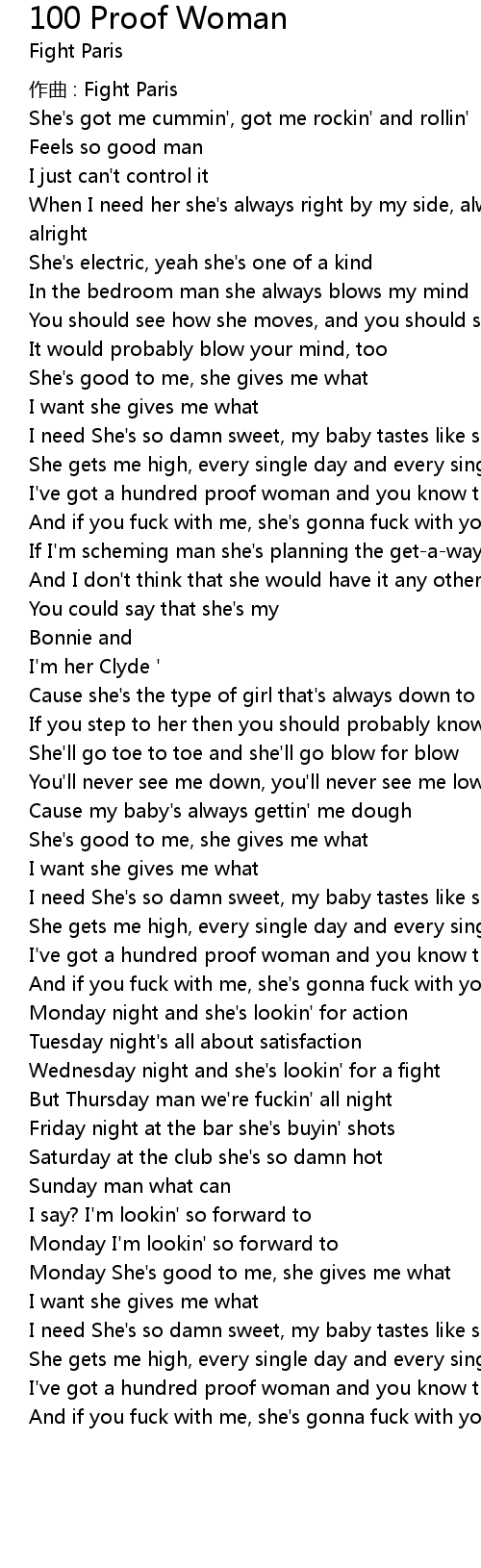 | I' ve got a hundred proof woman and you know that' s true | |