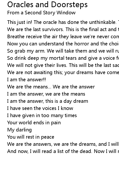 This just in! The oracle has done the unthinkable. They killed them! |