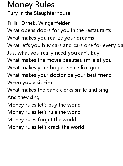 | Money rules let' s rule the world | |