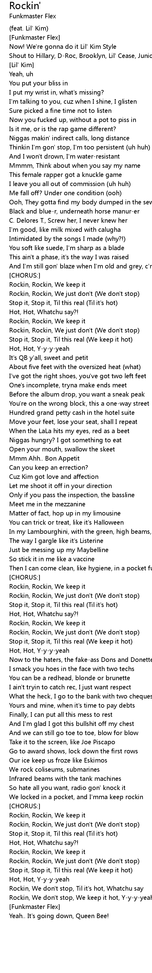 Rockin, We don't stop, Til it's hot, Whatchu say |