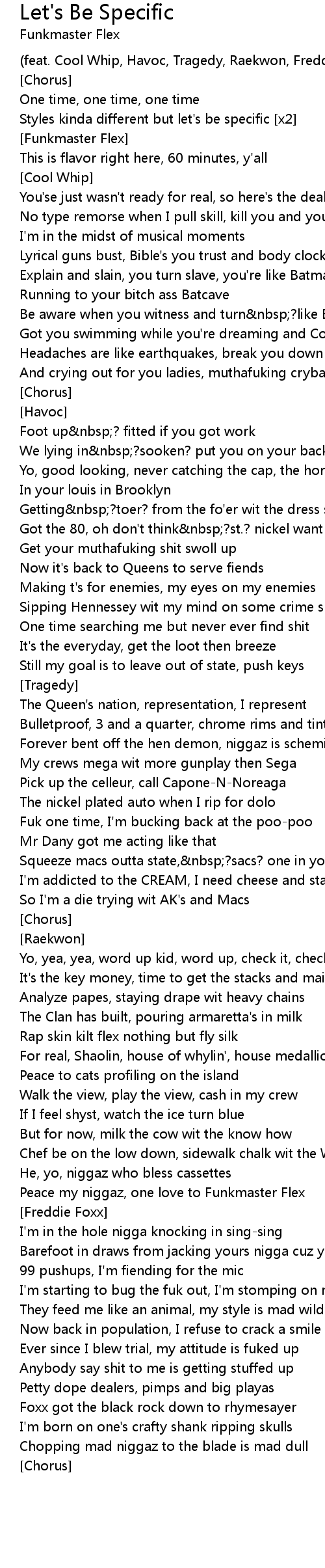 (feat. Cool Whip, Havoc, Tragedy, Raekwon, Freddie Foxxx) |