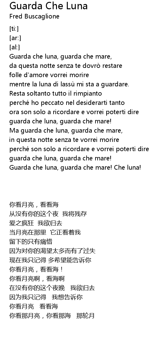 | [01:59.87] | Guarda che luna, guarda che mare! Che luna! |