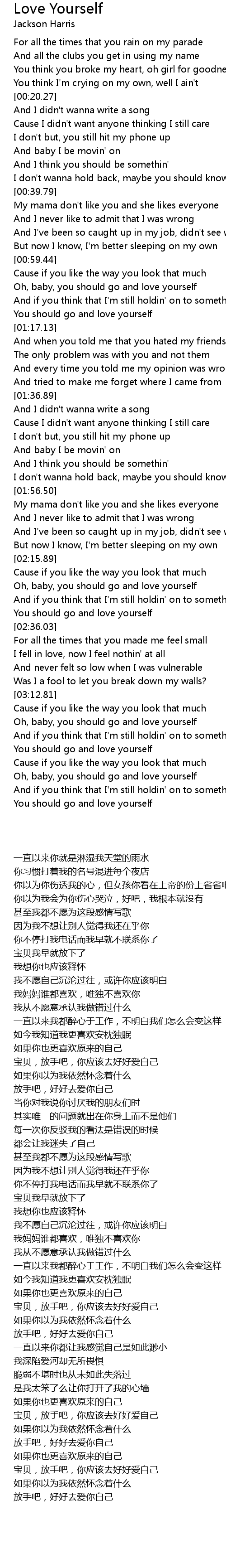 Oh, baby, you should go and love yourself |