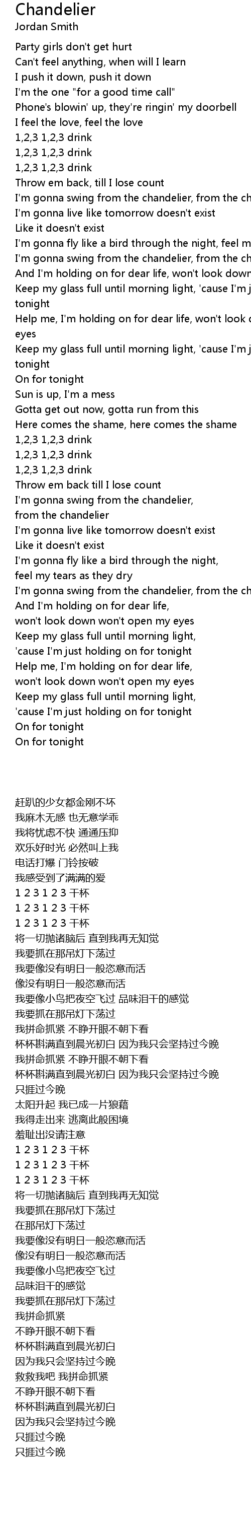 Keep my glass full until morning light, 'cause I'm just holding on for tonight |