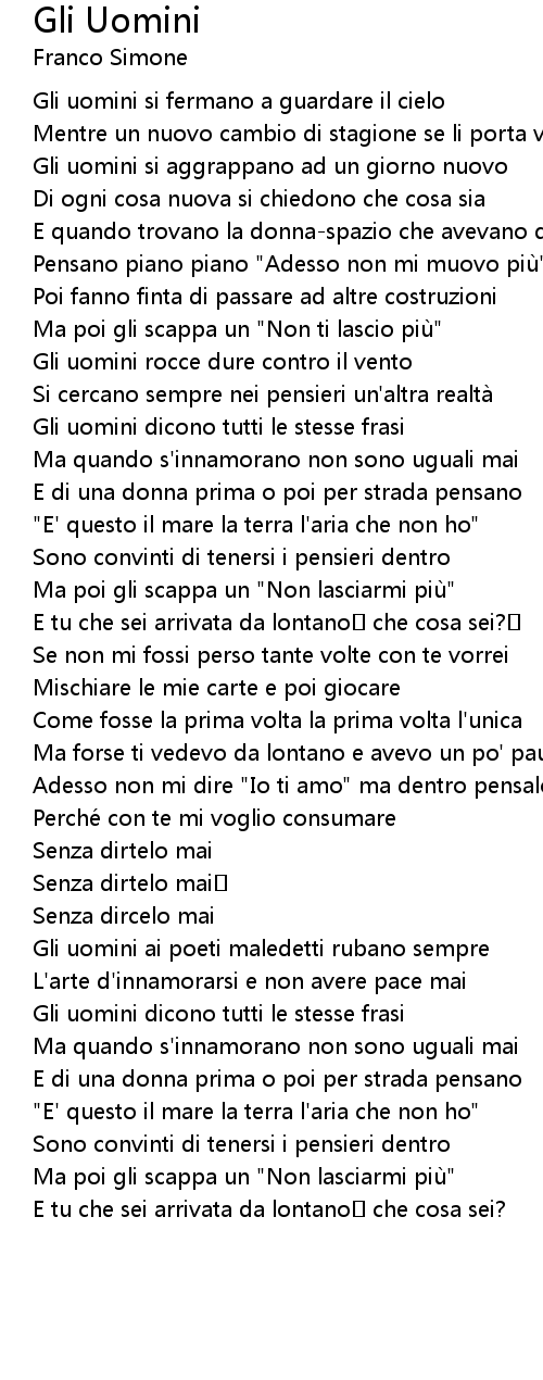 | Adesso non mi dire " Io ti amo" ma dentro pensalo | |