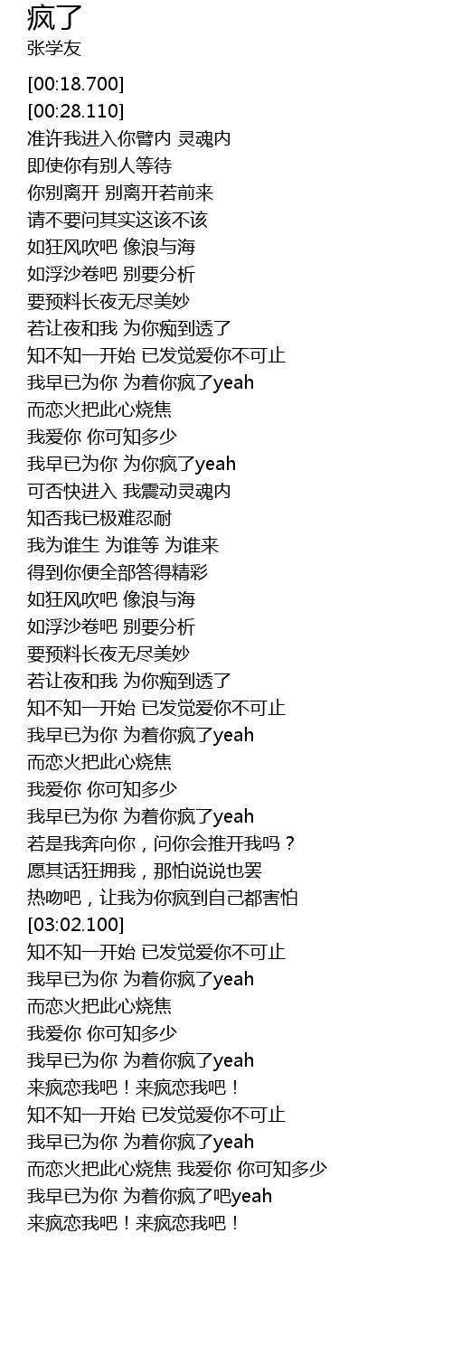 | [01:58.300] | 我早已为你 为着你疯了yeah |