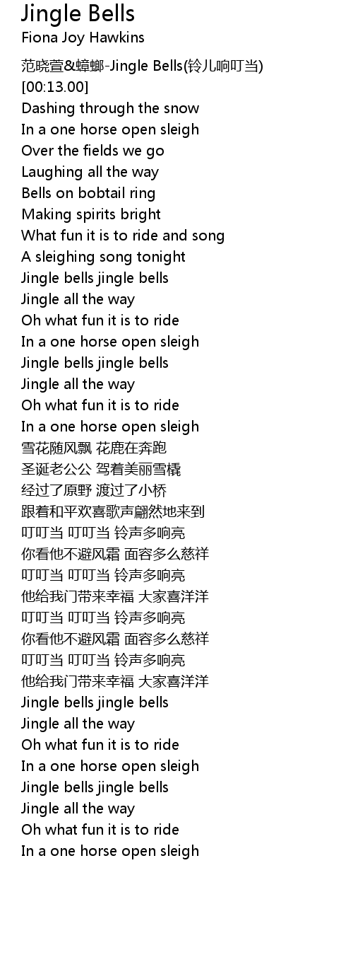 | [00:11.00] | fan xiao xuan zhang lang Jingle Bells ling er xiang ding dang |