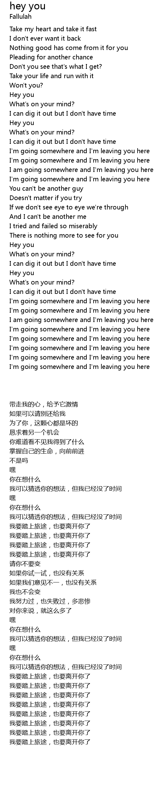 I am going somewhere and I'm leaving you here |