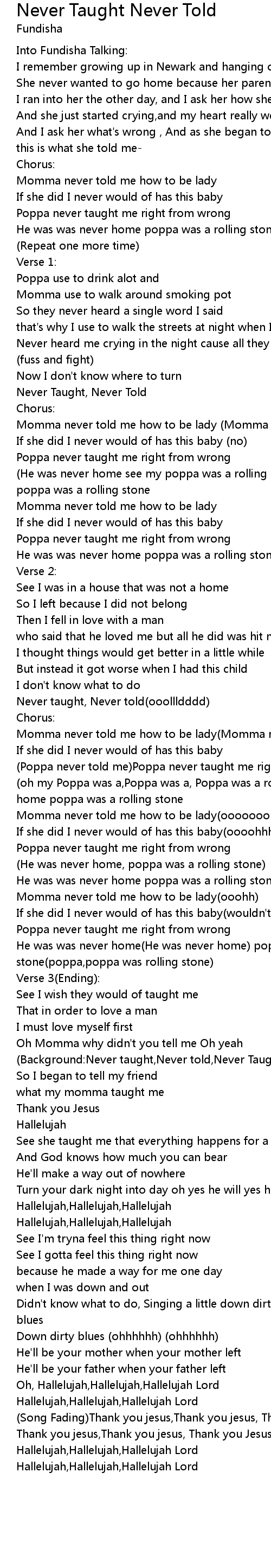 (Background:Never taught,Never told,Never Taught,Never told repeat) |