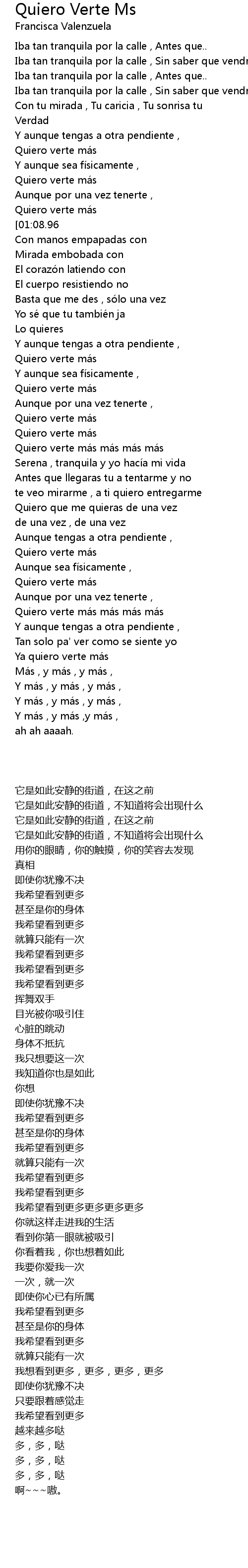 | [01:15.30][01:08.96] | Quiero verte ma s |