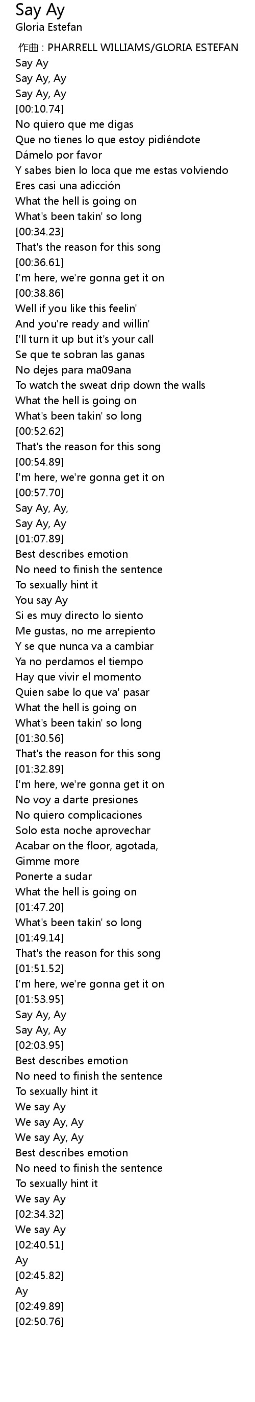 | [01:59.83] | Say Ay, Ay |