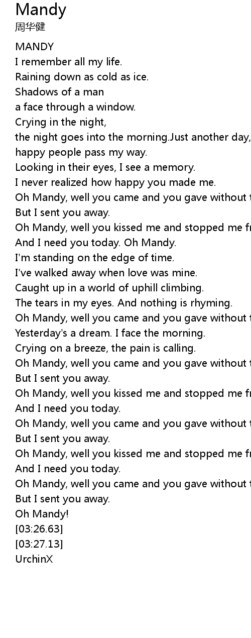 [01:33.70] Oh Mandy, well you came and you gave without taking.