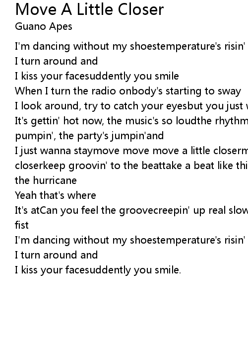 I just wanna staymove move move a little closermove move move a little closerkeep groovin' to the beattake a beat like thiswhen you move like thatdo the hurricane |