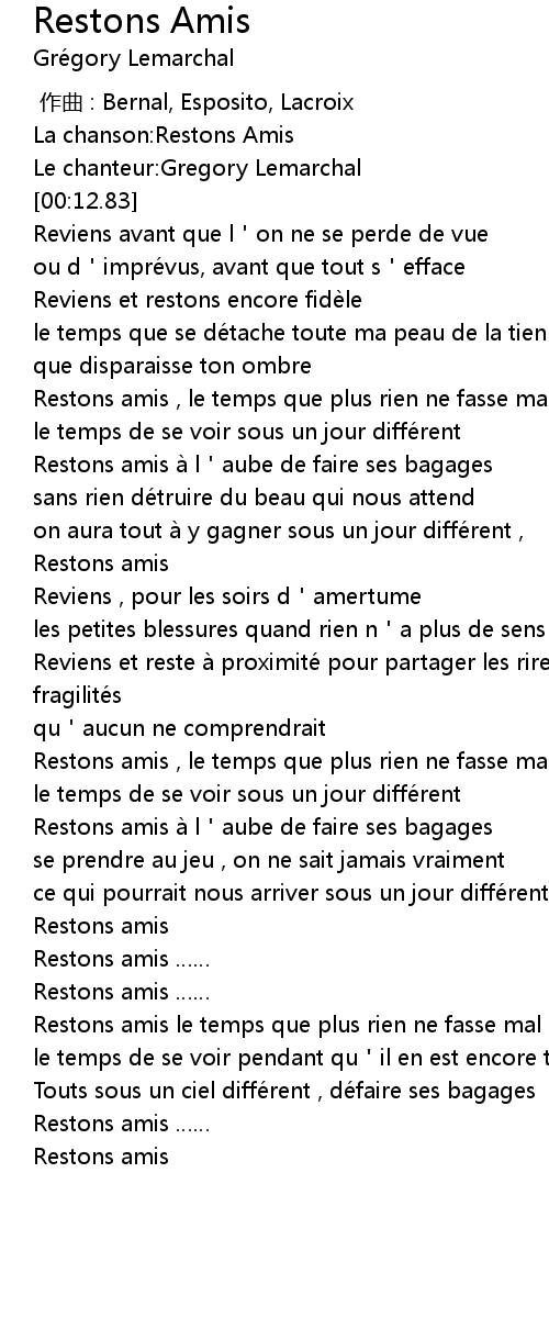 | [00:51.44] | Restons amis à l aube de faire ses bagages |