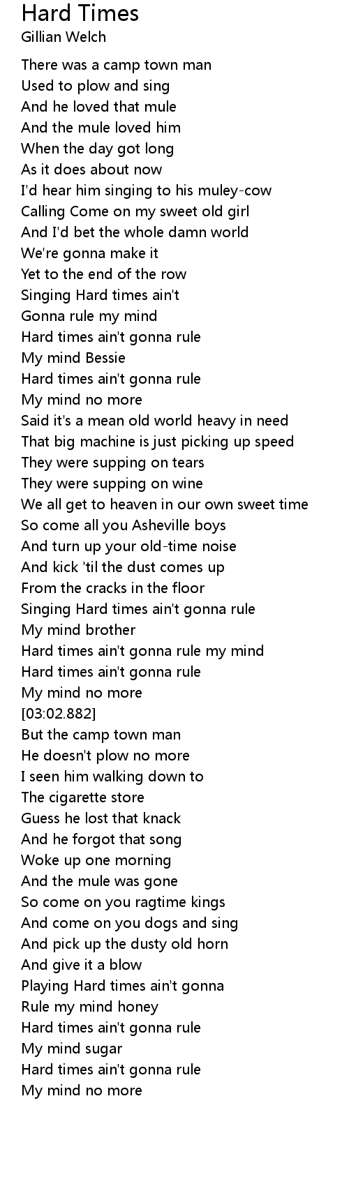Singing Hard times ain't |