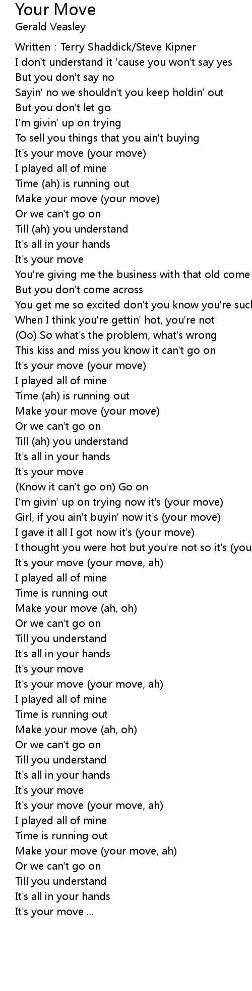| I thought you were hot but you' re not so it' s your move, your move, your move | |