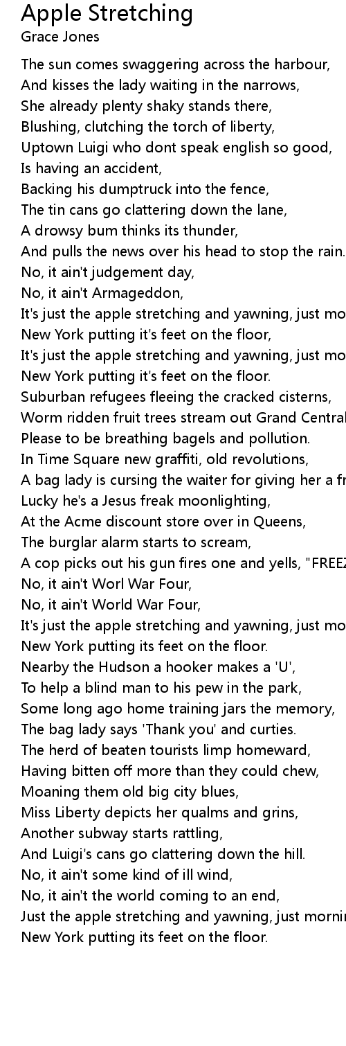 It's just the apple stretching and yawning, just morning, |