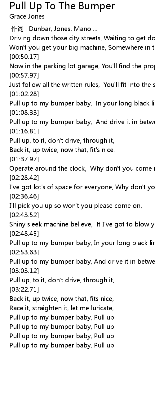 | [03:41.74] | Pull up to my bumper baby, Pull up |
