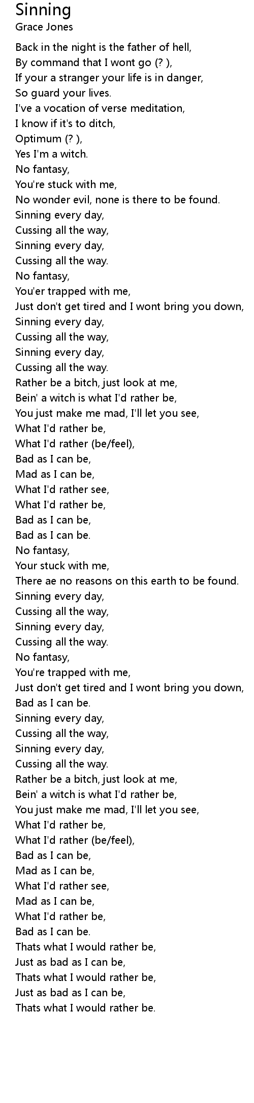 Bein' a witch is what I'd rather be, |
