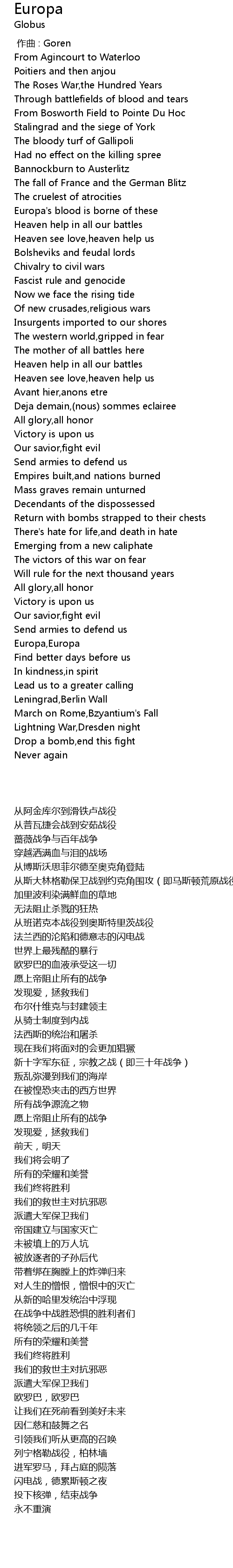 | [03:30.27] | 欧罗巴,欧罗巴 |