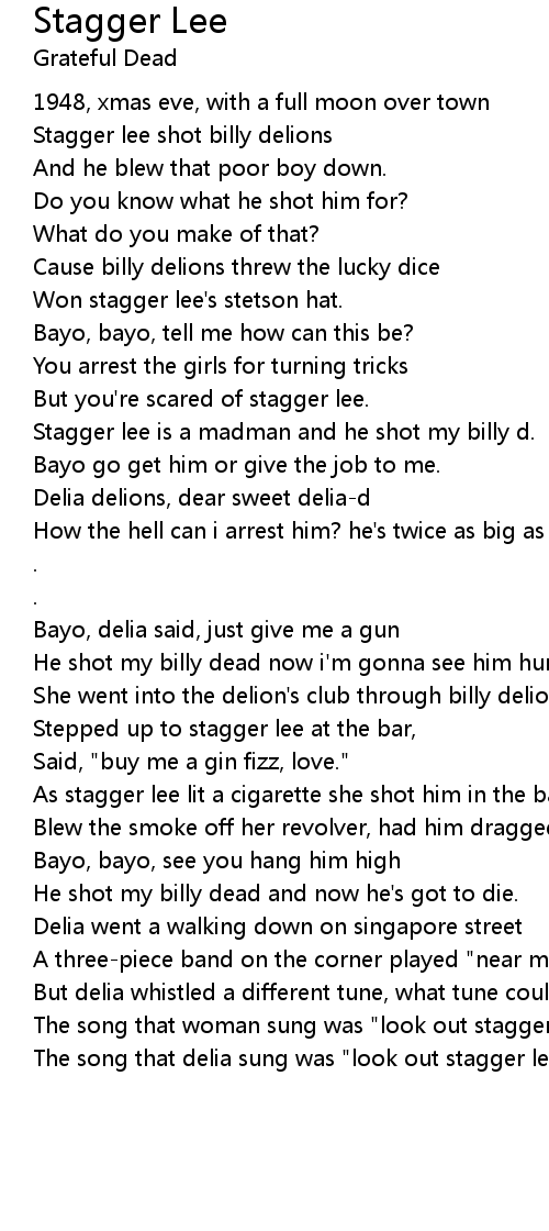 Stagger lee is a madman and he shot my billy d. |