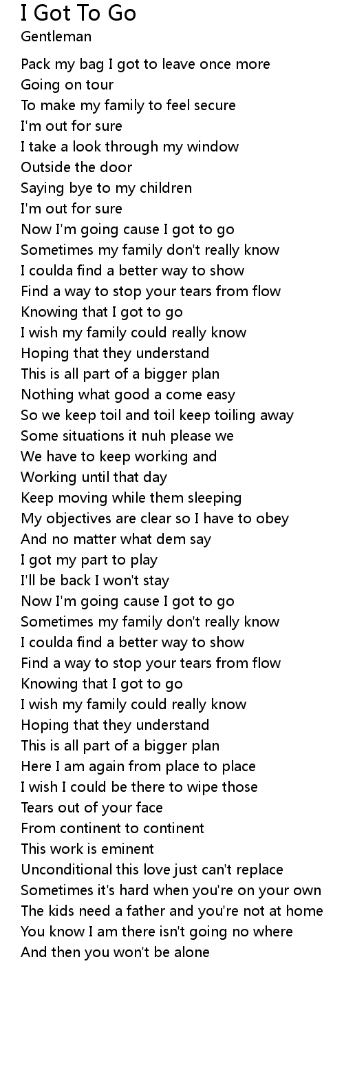 | Now I'm going cause I got to go | |