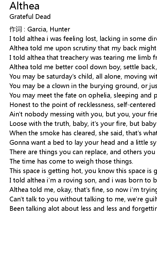 | 歌曲 | Althea |
