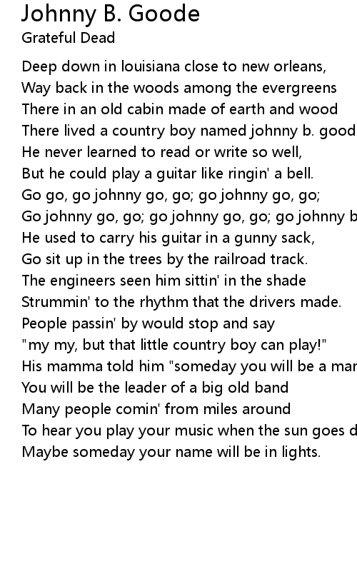 Go johnny go, go; go johnny go, go; go johnny b. goode. |