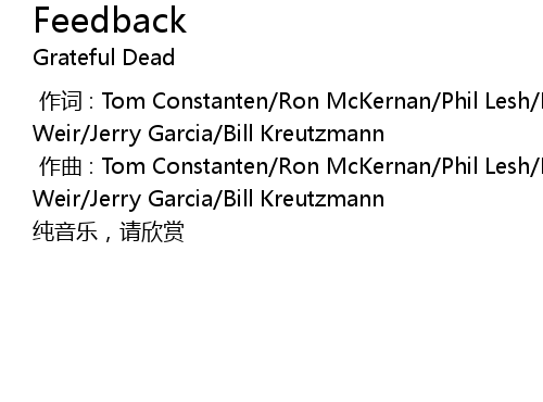 | [00:01.000] | zuo qu : Tom Constanten Ron McKernan Phil Lesh Mickey Hart Bob Weir Jerry Garcia Bill Kreutzmann |