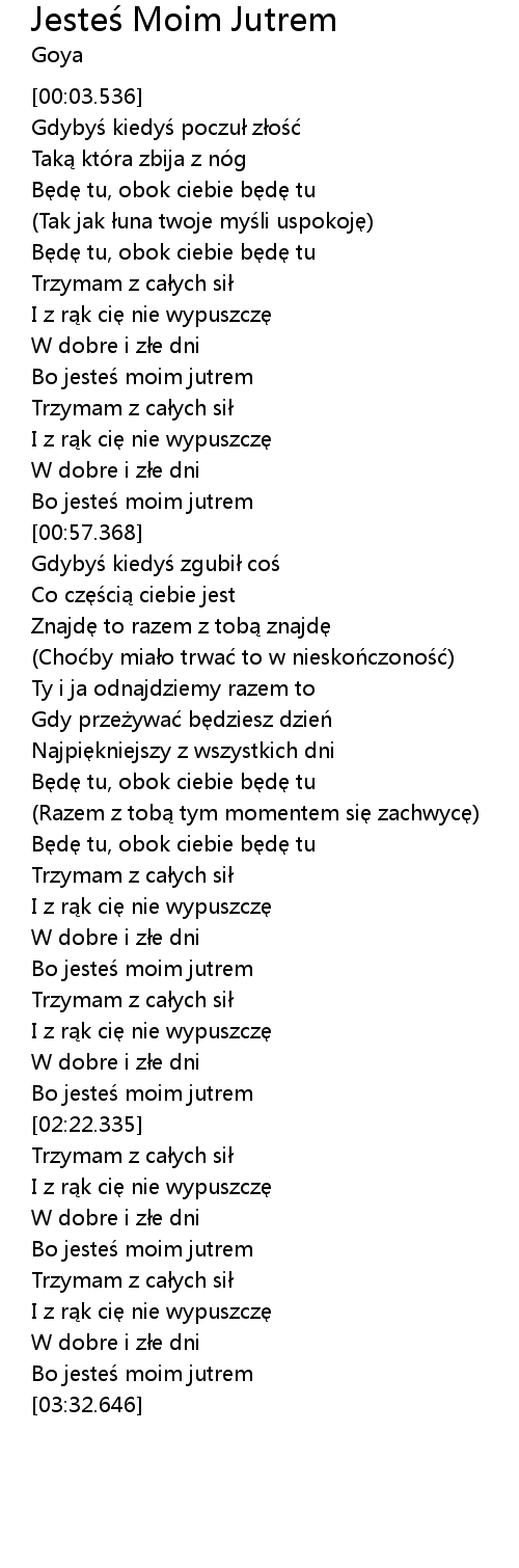 | [00:39.148] | Bo jesteś moim jutrem |