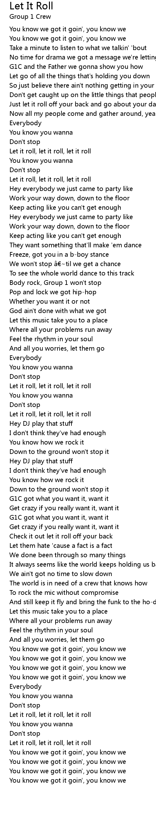 | 歌曲 | Let It Roll |
