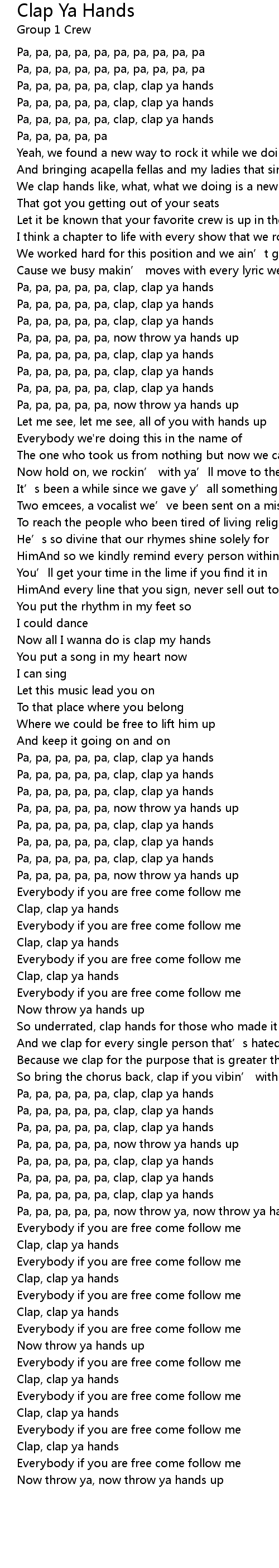 | Pa, pa, pa, pa, pa, clap, clap ya hands | |