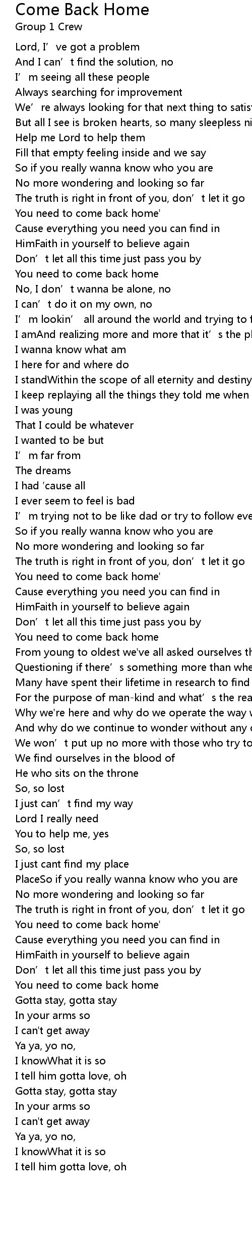 | You need to come back home | |