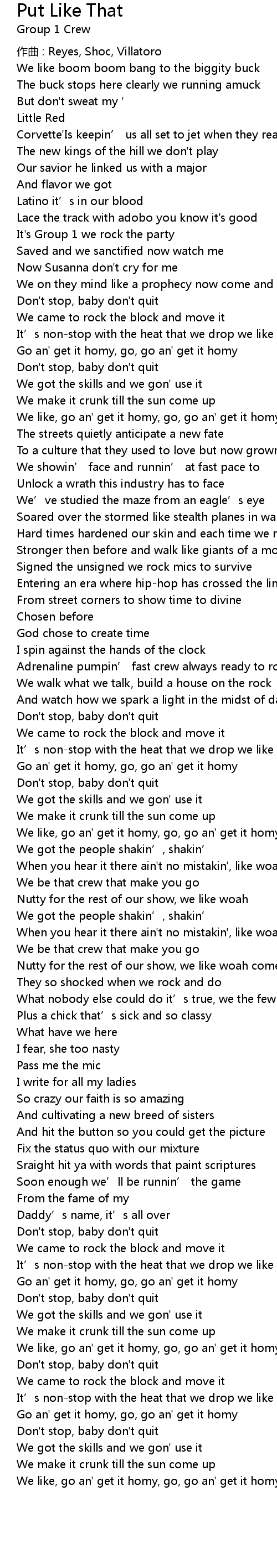 | 歌曲 | Put Like That |