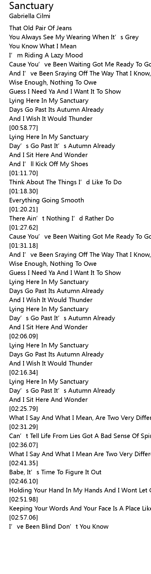 | [02:27.48] | What I Say And What I Mean, Are Two Very Different Things |