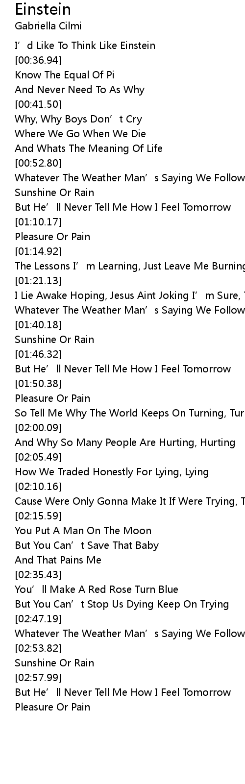 | [00:33.98] | I’d Like To Think Like Einstein |