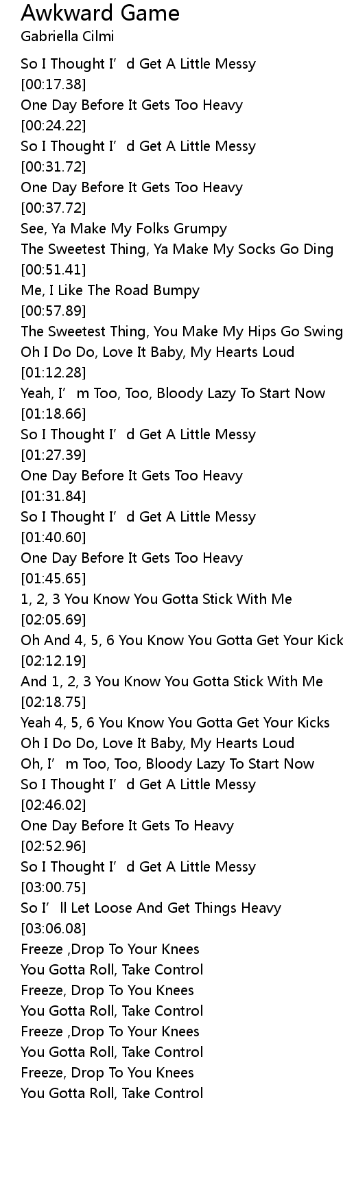 | [02:43.33] | So I Thought I' d Get A Little Messy |