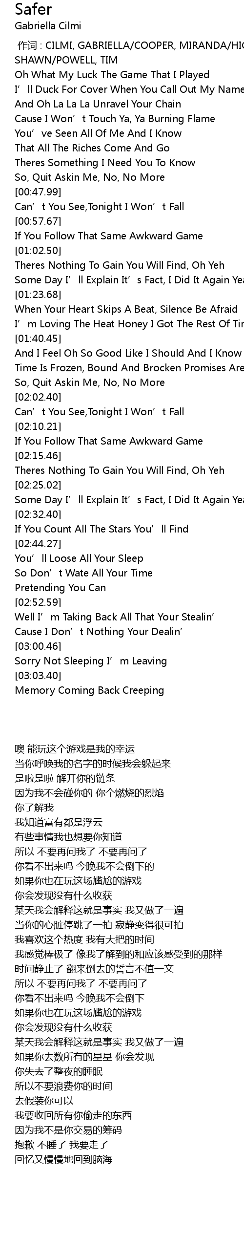 | [00:00.00] | 作词 : CILMI, GABRIELLA/COOPER, MIRANDA/HIGGINS, BRIAN/LEE, SHAWN/POWELL, TIM |
