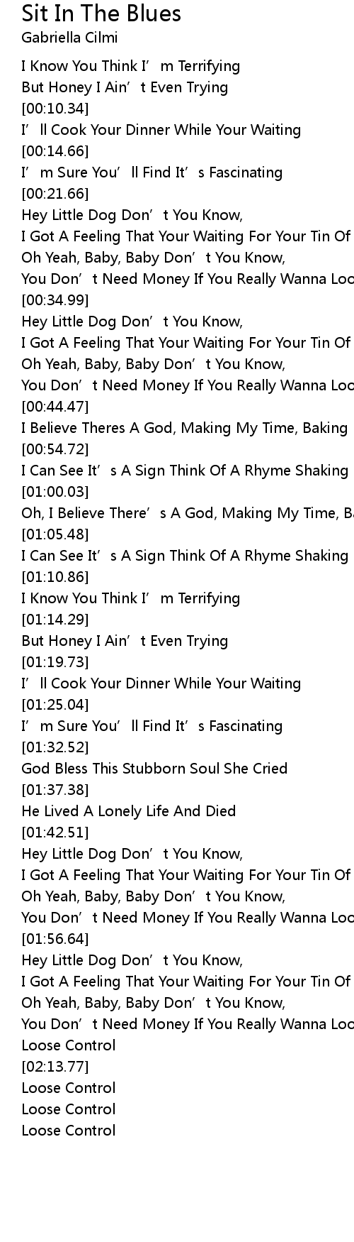 | [02:05.14] | You Don' t Need Money If You Really Wanna Loose Control |