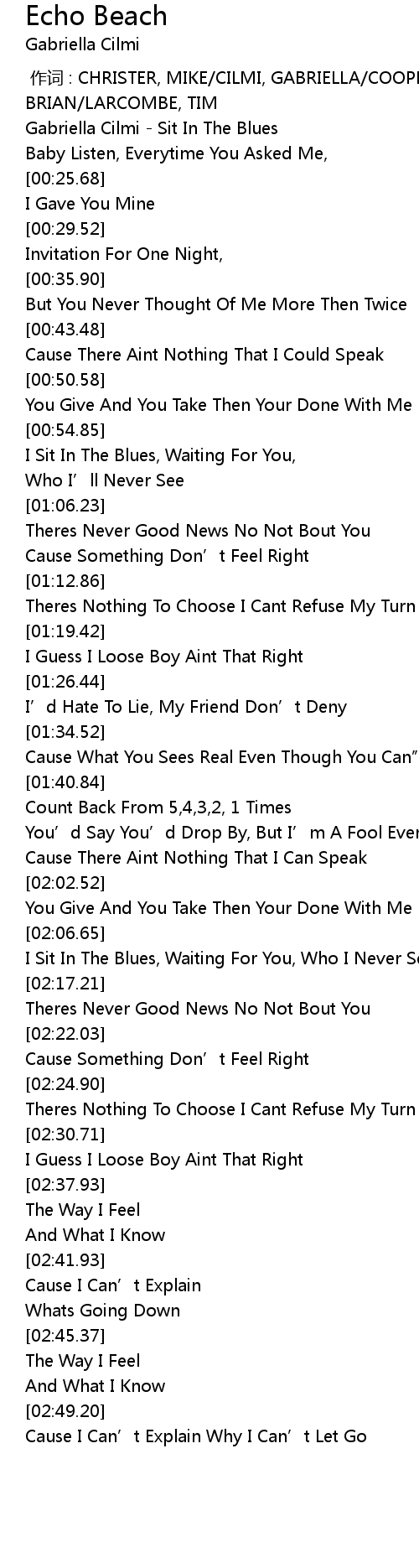 | [00:00.64] | Gabriella Cilmi Sit In The Blues |