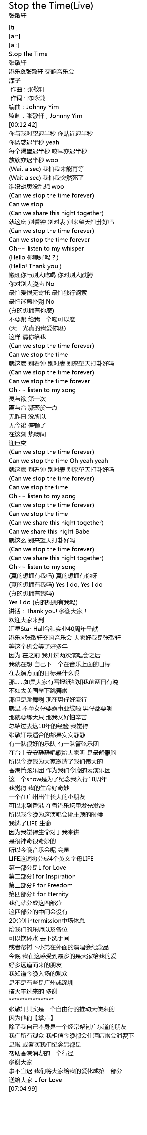 | [04:19.15] | yīn wèi zài zhī qián wǒ kāi guò liǎng cì yǎn chàng huì zhī hòu |