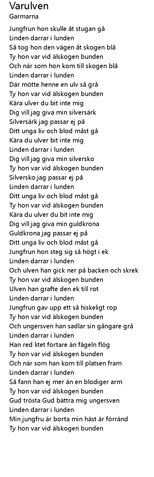 | Min jungfru r borta min h st r f rr nd | |
