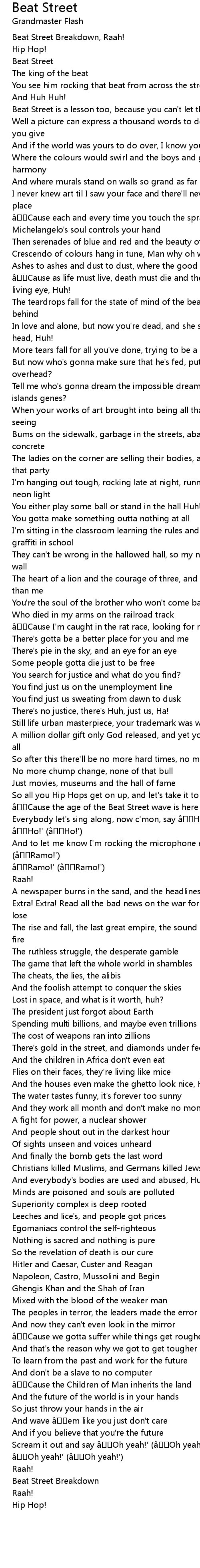 | Beat Street is a lesson too, because you can' t let the Streets beat you! | |